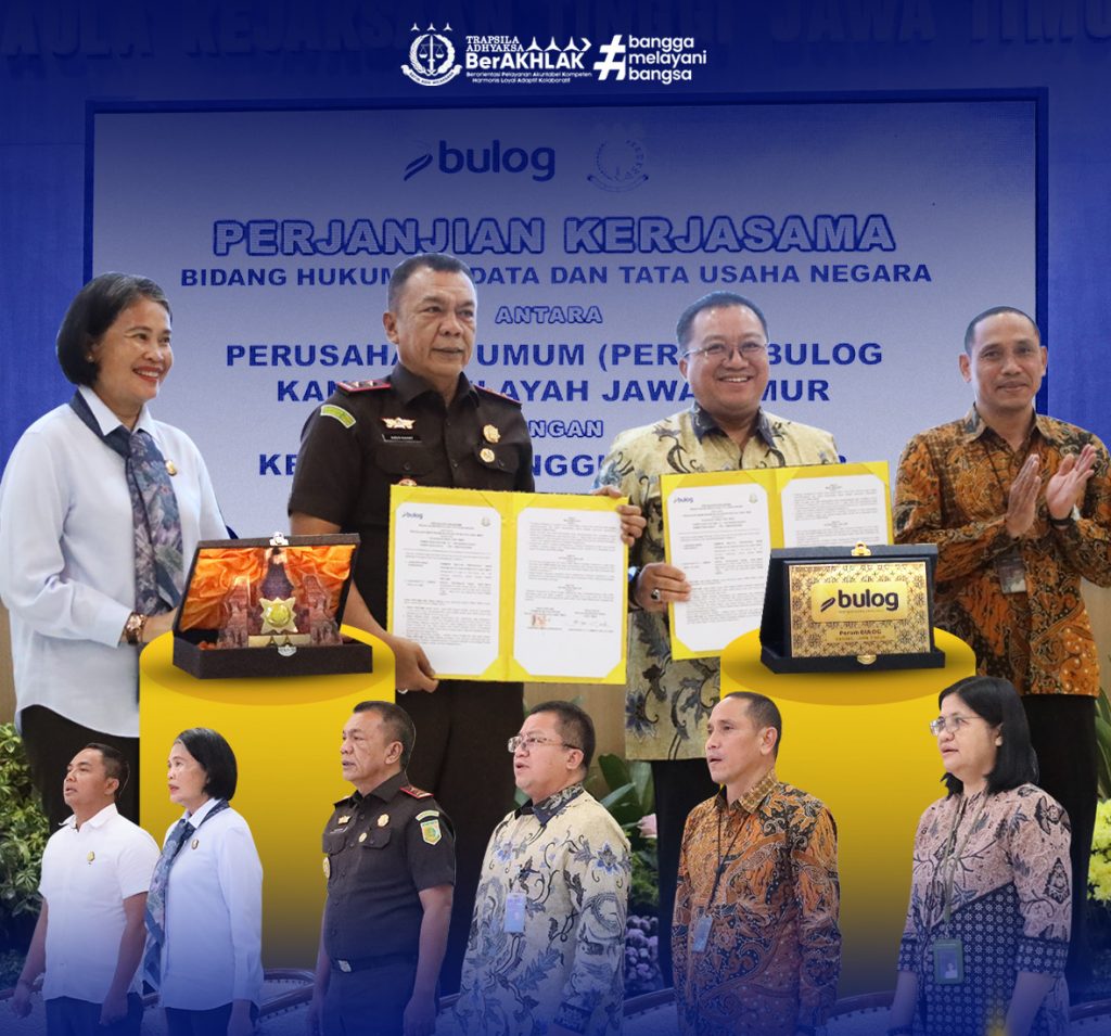 Perjanjian tersebut ditandatangani langsung oleh Kepala Kejaksaan Tinggi Jawa Timur Agus Sahat ST, S.H., M.H., dan Pemimpin Wilayah Perum Bulog Jatim Langgeng Wisnu Adinugroho. Kegiatan ini turut disaksikan Wakil Pemimpin Wilayah Perum Bulog Sugeng Hardono, Asisten Perdata dan Tata Usaha Negara (Asdatun), Asintel, para Koordinator dan Kasi Bidang Datun, jajaran manajer serta regional manajer Perum Bulog Jawa Timur, dan Jaksa Pengacara Negara.