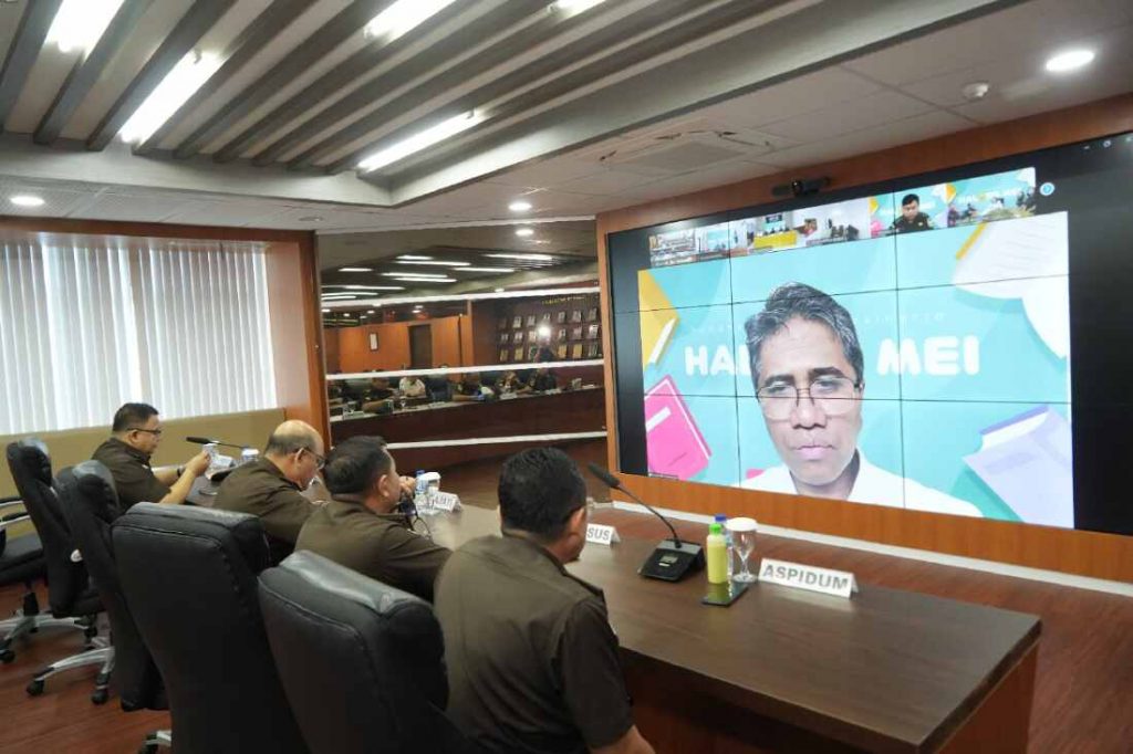 Kepala Kejaksaan Tinggi Jawa Timur yang diwakili oleh Wakil Kepala Kejaksaan Tinggi Jawa Timur Basuki Sukardjono, S.H., M.H, beserta para Asisten dan Tim Kerja Pembangunan ZI menuju WBK/WBBM mengikuti Halo RB Mei 2024 dengan Karocana Tiyas Widiarto, SH.,MH. secara virtual dari ruang rapat Kajati Jatim Lantai 3. Rabu (08/05/2024)