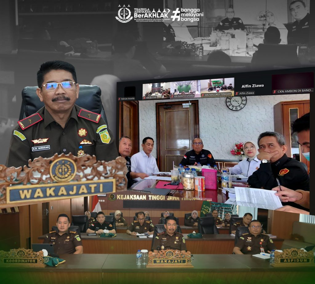 Surabaya – Wakil Kepala Kejaksaan Tinggi Jawa Timur, Saiful Bahri Siregar, S.H., M.H., didampingi Aspidum, Koordinator, para Kasi Bidang Pidum, dan Jaksa Fungsional, mengikuti Coaching Clinic Tematik Penanganan Perkara Judi Online yang diselenggarakan oleh Direktorat D Jaksa Agung Muda Tindak Pidana Umum secara daring, Rabu (7/1/2026).