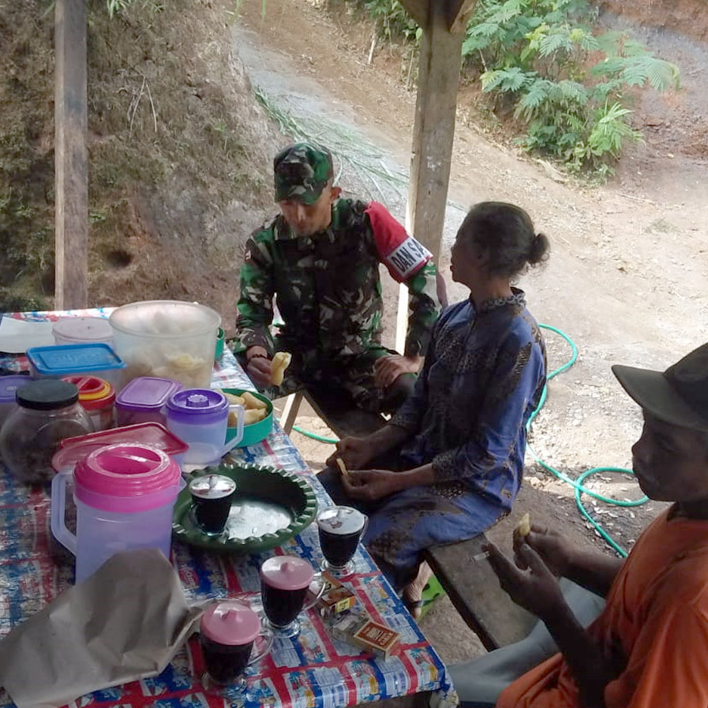 “Kadang juga di warung-warung kopi ketika Satgas sedang beristirahat bersama warga di lokasi TMMD,” ungkapnya.