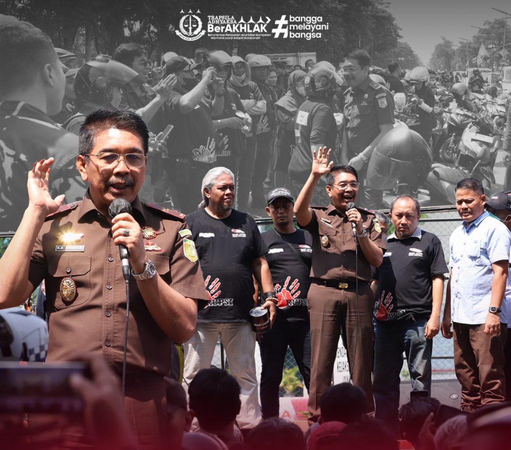 Di hadapan ribuan demonstran, Wakajati Jatim menegaskan komitmen bahwa Kejaksaan Tinggi Jawa Timur akan menuntaskan setiap perkara tindak pidana korupsi secara profesional, proporsional, dan berlandaskan ketentuan hukum yang berlaku.